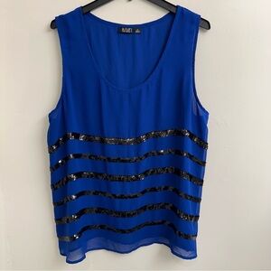 A.N.A. Sleeveless Blue Sequin Striped Women's Tank Top SZ 2X