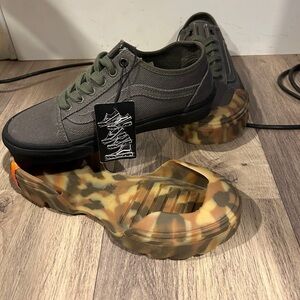 These canvas twill with speckle grape leaf modular it can be removed and put on any other of your Vans these are so cool it’s like having 2 different shoes in one.Please note that these shoes are bought from a rep and that’s why it say “sample not for resale “