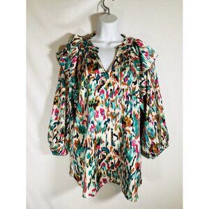 Marissa Blouse Boutique Ruffle Top Large Balloon Sleeve Colorful Flowy Y2K 90's Colorful Flutter