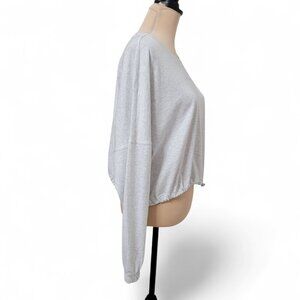 Calvin Klein Size XL Light Gray Long Sleeve Cropped Pullover with Drawcord Waist