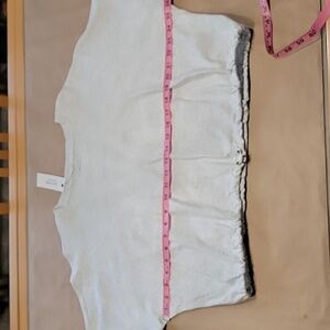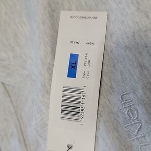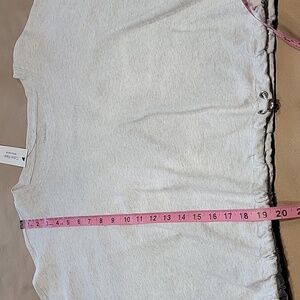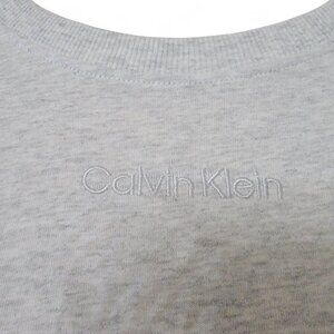Calvin Klein Size XL Light Gray Long Sleeve Cropped Pullover with Drawcord Waist. NEW with Tag. Drop Shoulder. Long Sleeve with Elastic Cuffs. Lightweight T-Shirt Feel. Drawcord Waistband. Calvin Klein Spellout in Light Gray Across Chest. Please refer to measurments in photos to ensure proper fit. Shown on size 4-6 mannequin.