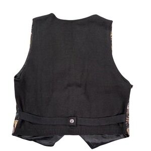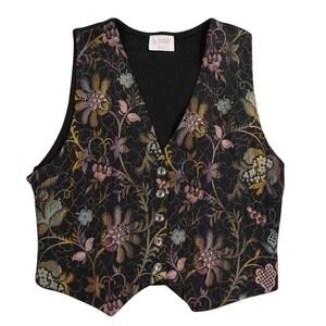 Beldoch Popper Floral Jacquard Vest Womens Medium Black Button Front Grannycore