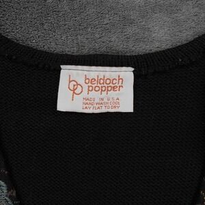 Keywords: Beldoch Popper Vest, Floral Jacquard Vest, Black Button Front Vest, Women's Vest Medium, Vintage Vest, Boho Vest, Unique Pattern Vest, Layering Piece, Statement Vest, Designer Vest, Knit Back Vest, Jacquard Fabric, V Neck Vest, Button Up Vest