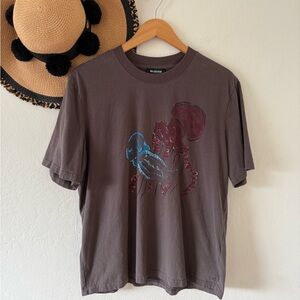 NAADAM Gray Short Sleeve Oversized Boxy Graphic Tee Painted Octopus Size Medium