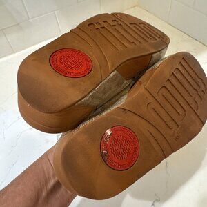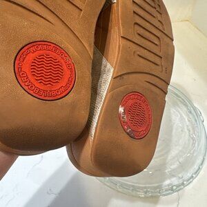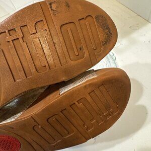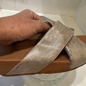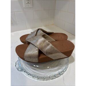 FitFlop Women Lulu Cross Slide Sandals Gold Shimmer Print Shoes Size 5