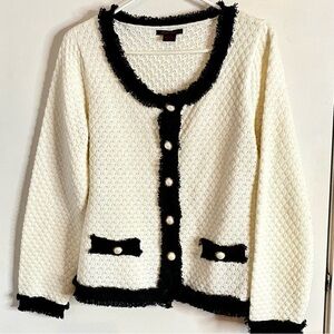 Elegant Black and White Women's cardigan/Sweater Size M w/Tiny Discreet Sparkles