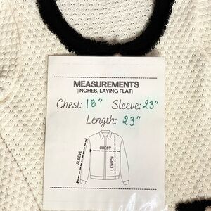 This elegant black and white sweater offers a chic and timeless look. Could be worn with a black Turtleneck underneath or a blouse. Tiny sparkles within the knit fabric.