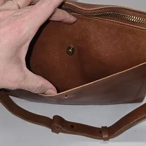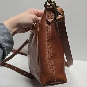 This stylish tan leather crossbody bag is perfect for any occasion. Its sleek design and durable material make it a must-have accessory.