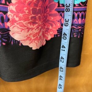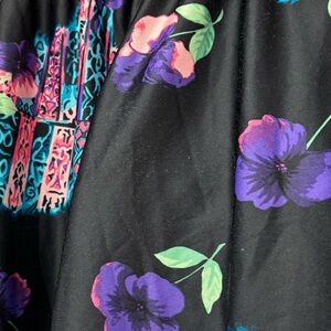 Black satiny feel polyester nightgown with vibrant floral print