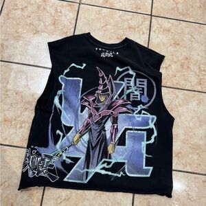 YOUNGLA X YU-GI-OH Black Graphic Sleeveless Top