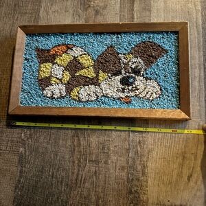 Vintage Kitsch Gravel Art Puppy Dog Wall Hanging, 1960s MCM Pebble Mosaic