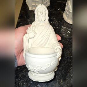 Flowerpot, Candle Withthe Imagen Of Jesus.
