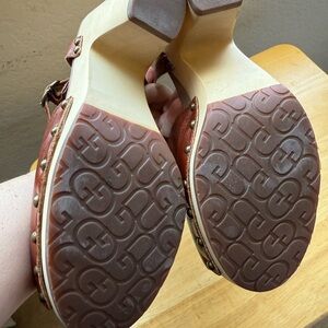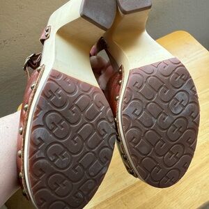 NWOT UGG Brown Leather Nadia Studded Clog Sandal Heels in Size 9