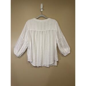 J Jill White Striped Button Up V Neck 3/4 Sleeve Blouse Womens Size Large