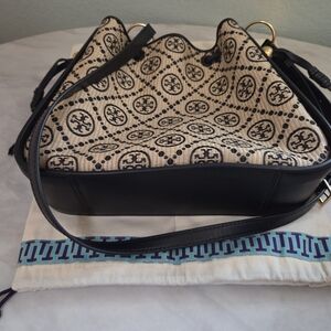 $598 Tory Burch T Monogram Bell Bag Black/Tan