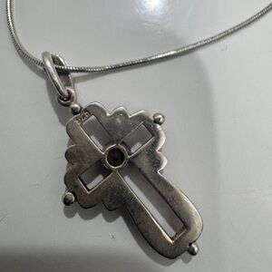 This stunning cross necklace features a detailed design in silver and black, perfect for enhancing any ensemble with elegance. A versatile piece for any occasion.