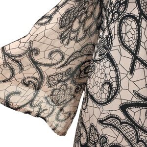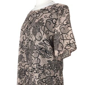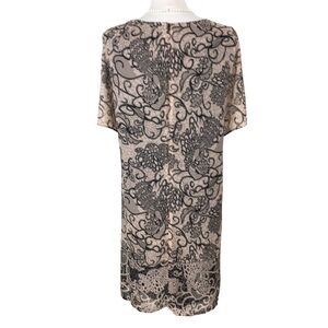 Signature Collection Avon Chiffon Nude with Black Lace Print Midi Dress size 2X