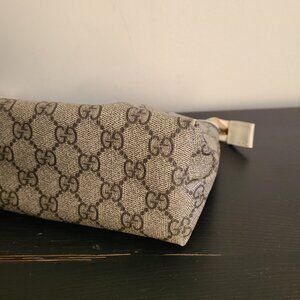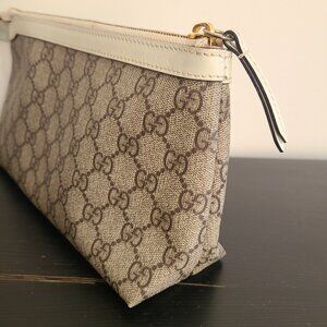 Gucci GG Supreme Web Bag Clutch Canvas Brown Pouch Zip Medium