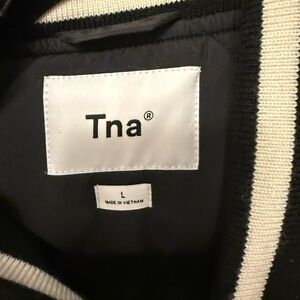 TNA Black Varsity Jacket with Red and White Embroidery