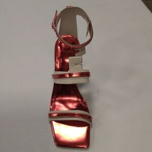 Chic red and white heels with strappy design. Perfect for stylish outings.
