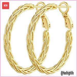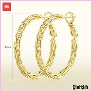 14K Gold Twisted Hoop Earrings 30MM Hypoallergenic Fine Weave Design