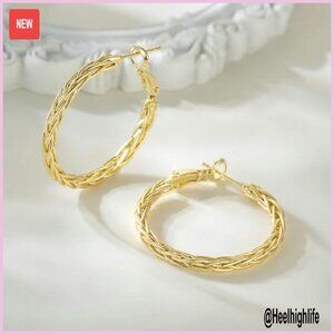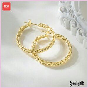 Brand new, never worn, and in flawless condition — these elegant 14K gold hoop earrings feature a captivating fine weave twisted design that adds a unique, artistic statement to any look. The polished finish offers a radiant sheen and a hypoallergenic, comfortable wear perfect for daily styling or special occasions.