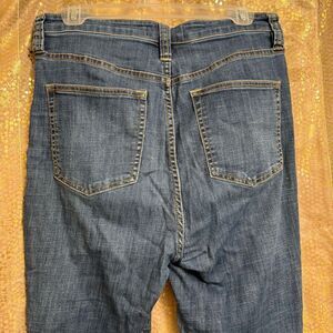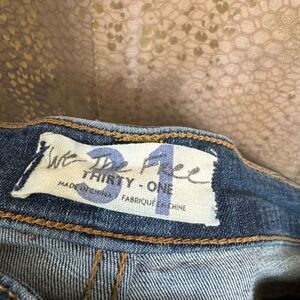 Good used condition, smoke and pet free home. They have been worn and loved, they have some very mild puckering and the inner thigh material is a little thin, not see through or anything like that but its got some wear. Please see and examine all pics. Good amount of stretch, raw bottom hem, button fly. Super cute jeans you will get compliments on these ones for sure.