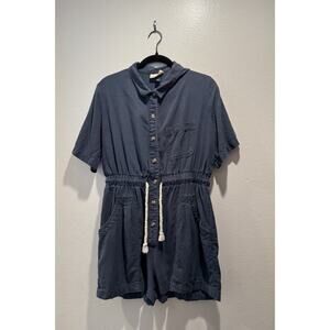 Universal Thread Romper Women’s Size Medium Blue Linen Blend Button Down Coastal