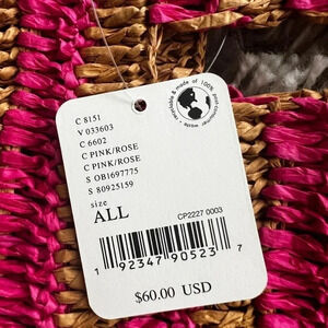 Free People Brunch Date Clutch, color rattan and hot pink. 100% raffia with a detachable crossbody strap. NWT