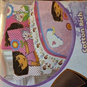 Vibrant sheet set featuring Dora the Explorer. Soft and cozy fabric.