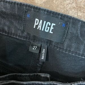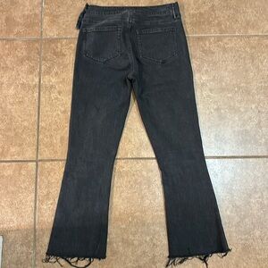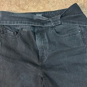 Paige Colette Cropped Flare Leg Belted Sash Raw Hem Jeans Ravenwood Black