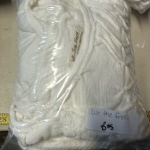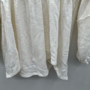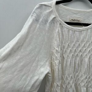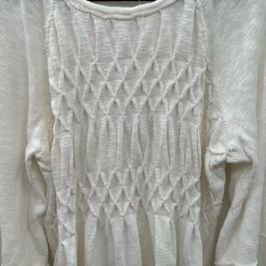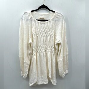 FREE PEOPLE SNOWBELL Babydoll cream cottagecore boho woman oversized billowy drape design tunic. Soft fabrication, textured detail. Swingy design with asymmetrical hem, raglan sleeve.