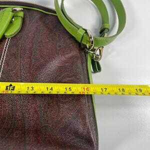 Etro Tote Crossbody Bag Green Brown Paisley Leather Made In Italy