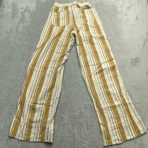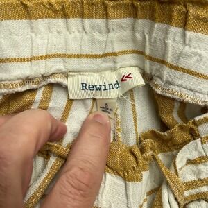 Rewind Women's Boho Striped Linen Wide Leg Pants Size S Elastic Waist Drawstring