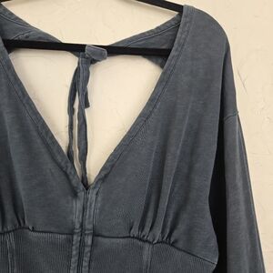 Anthro PILCRO Open Back Blue Long Sleeve Sweatshirt Crop Top, XL