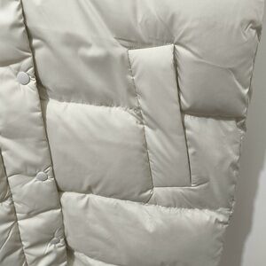 80% goose down + 20% feathers, with horizontal quilting for layered down retention