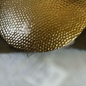 Women's 1980's 4" gold tone hammered round belt buckle with elasticized band. Size M/L. 29" total length with 3" wide bad. With original Nordstrom tags. Made in the USA