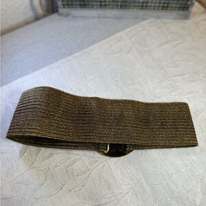 Kandell & Marcus 1980’s Gold Elasticized Vintage Belt. 4” Gold Buckle. Size M/L