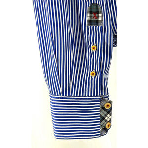 Robert Graham Blue White Stripe Dress Shirt Men’s 2XL Cotton Contrast Trim