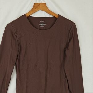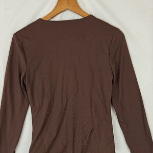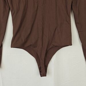 Nuuds Crew Scoop Neck Long Sleeve Bodysuit In Coffee Brown Size Small