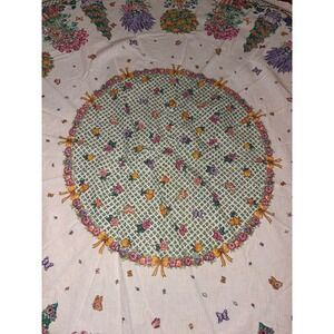 Fashion Industries 1995 Round Tablecloth Floral Fruit Lavender Butterfly Vintage