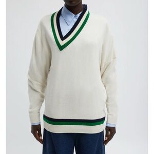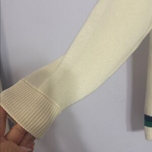 Elegant oversized cream sweater with subtle green stripe. Warp V-neck design super soft. Ideal for versatile styling. In great condition size XS.