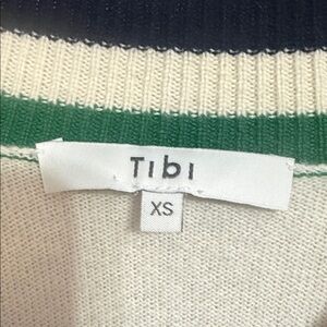 Tibi Women Washable Wool/Cashmere Blend Striped Warp V-Neck Pullover Size XS