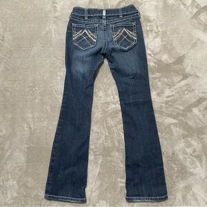 Keywords: Ariat jeans, Ariat Real Denim, low rise bootcut jeans, western jeans, cowgirl denim, boot cut jeans, size 26 short, western style jeans, country outfit denim, dark wash jeans