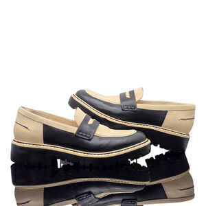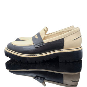 Schutz Christie Lug Sole Loafers Women’s 6B Black & Cream Leather Made in Brazil
