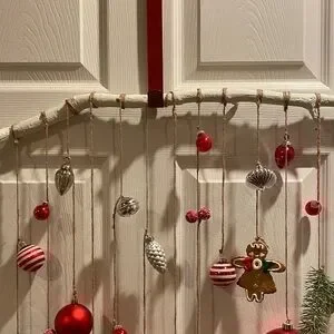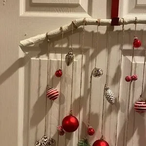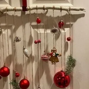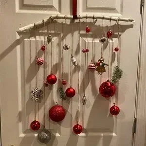 Add a touch of holiday cheer with this beautiful red and silver ornament mobile. Perfect for enhancing your festive decor.