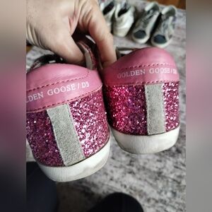 Shine with these vibrant pink glitter sneakers. Perfect for a bold look.