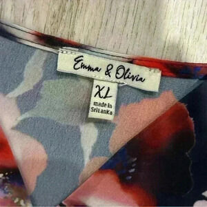 Emma & Olivia Floral Blouse Long Bell Sleeve Hi Low Crossover Front Size XL