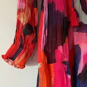 Step out in style with this vibrant long sleeved multicolor maxi dress. Perfect for any occasion, this dress features a stunning blend of colors that will make you stand out. Enjoy the comfort and elegance it brings to your wardrobe.