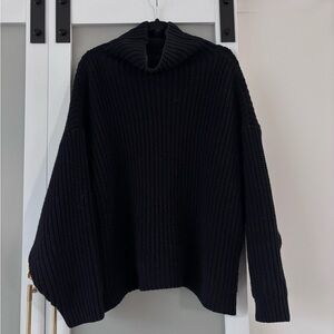 Chic black cowl neck sweater. Soft knit fabric. Ideal for layering. Cotton/Acrylic blend